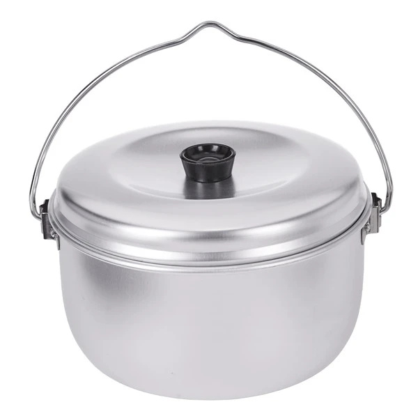 Großer Lagerkessel aus Aluminium, mit klappbarem Henkel und Deckel. Der Topf kann auch mit der Trangia-Griffzange bedient werden und passt auf das kleine Trangia-Sturmkocherset.