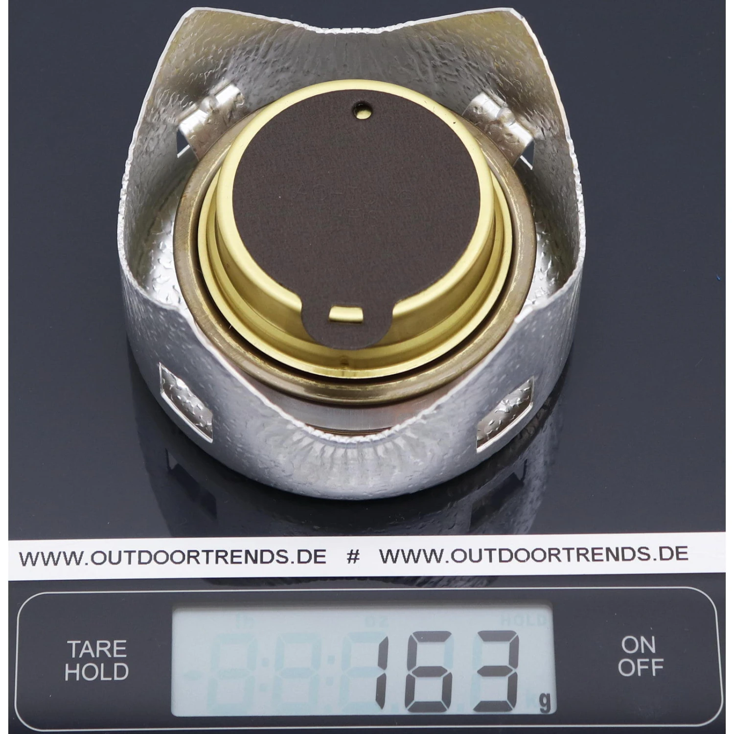 Der Minikocher von Trangia ist ein Set aus Spiritusbrenner und Topfgestell, das Gestell dient auch als Windschutz. Der Kocher ist perfekt für kleine Töpfe und ist extrem platzsparend und leicht.