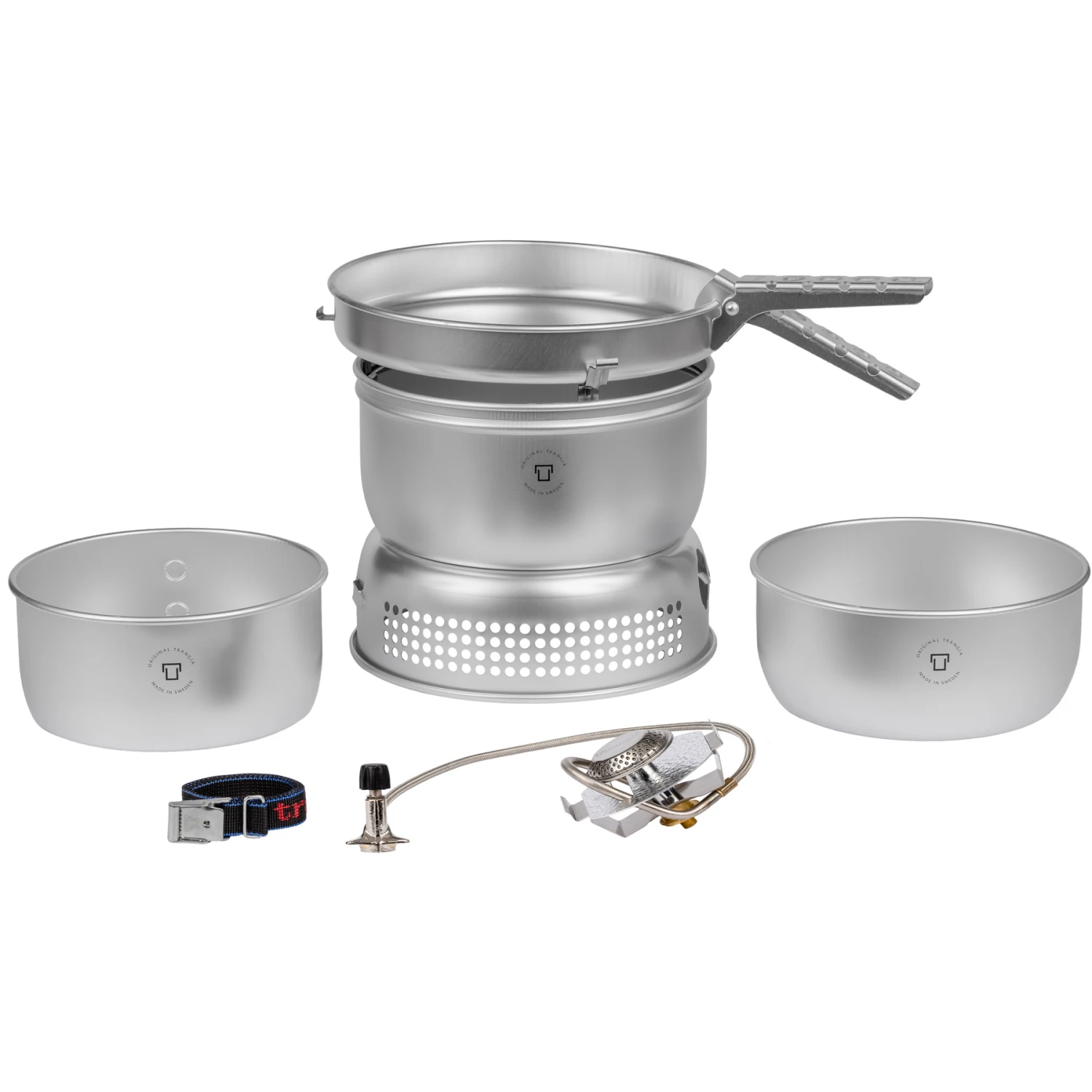 Dieses sturmsichere Kochersystem basiert auf Einfachheit. Zweiteiliger Windschutz, ein Gasbrenner, ein paar Töpfe, ein kombinierter Deckel/Bratpfanne und ein Griff. Das Kochsystem ist leicht und zuverlässig, ohne unnötige Teile, die kaputt gehen oder durch Kälte beeinträchtigt werden können. Der Kocher lässt sich schnell aufstellen und danach wieder kompakt zusammen packen. Die Serie 25 von Trangia umfasst das etwas größerer Kochersystem, die für Gruppen von etwa 3-4 Personen geeignet sind.