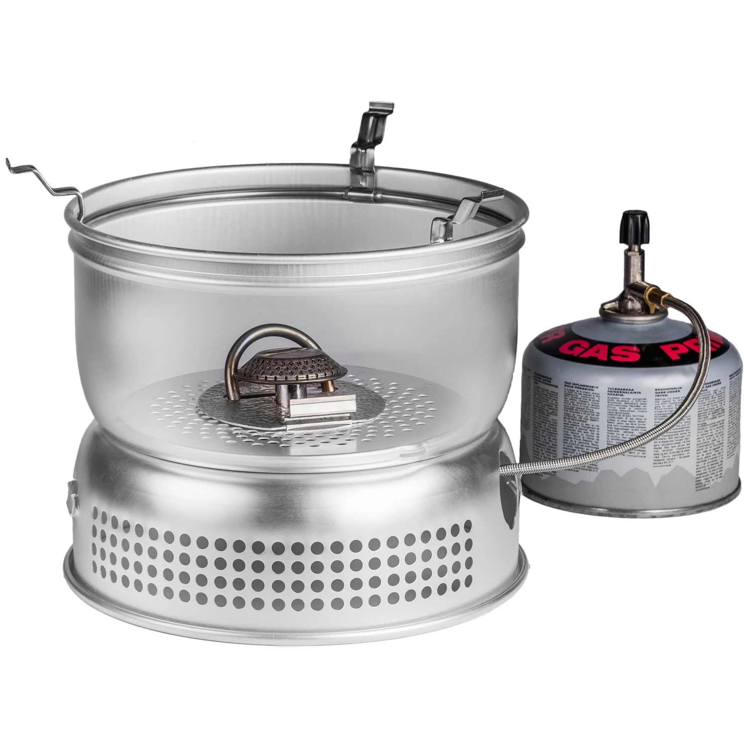 Der Gasbrenner ist einfach zu bedienen, hat schnelle Siedezeiten und hält die Pfannen rußfrei. Es handelt sich um einen universellen Gasbrenner, dessen Patronen in den meisten Ländern der Welt erhältlich sind. Der Gasbrenner passt auf alle Herde mit Ausnahme des Mini Trangia. Passt zu allen Propan/Butangas-Patronen mit EN417-kompatiblen Gewindeventilen. Diese Patronen sind in den meisten Ländern auf der ganzen Welt erhältlich. Kocht 1 Liter Wasser in 3,5 Minuten (variiert je nach Wetter und Brennstoffqualität). Er verbrennt 150 g Gas pro Stunde mit voller Wirkung.