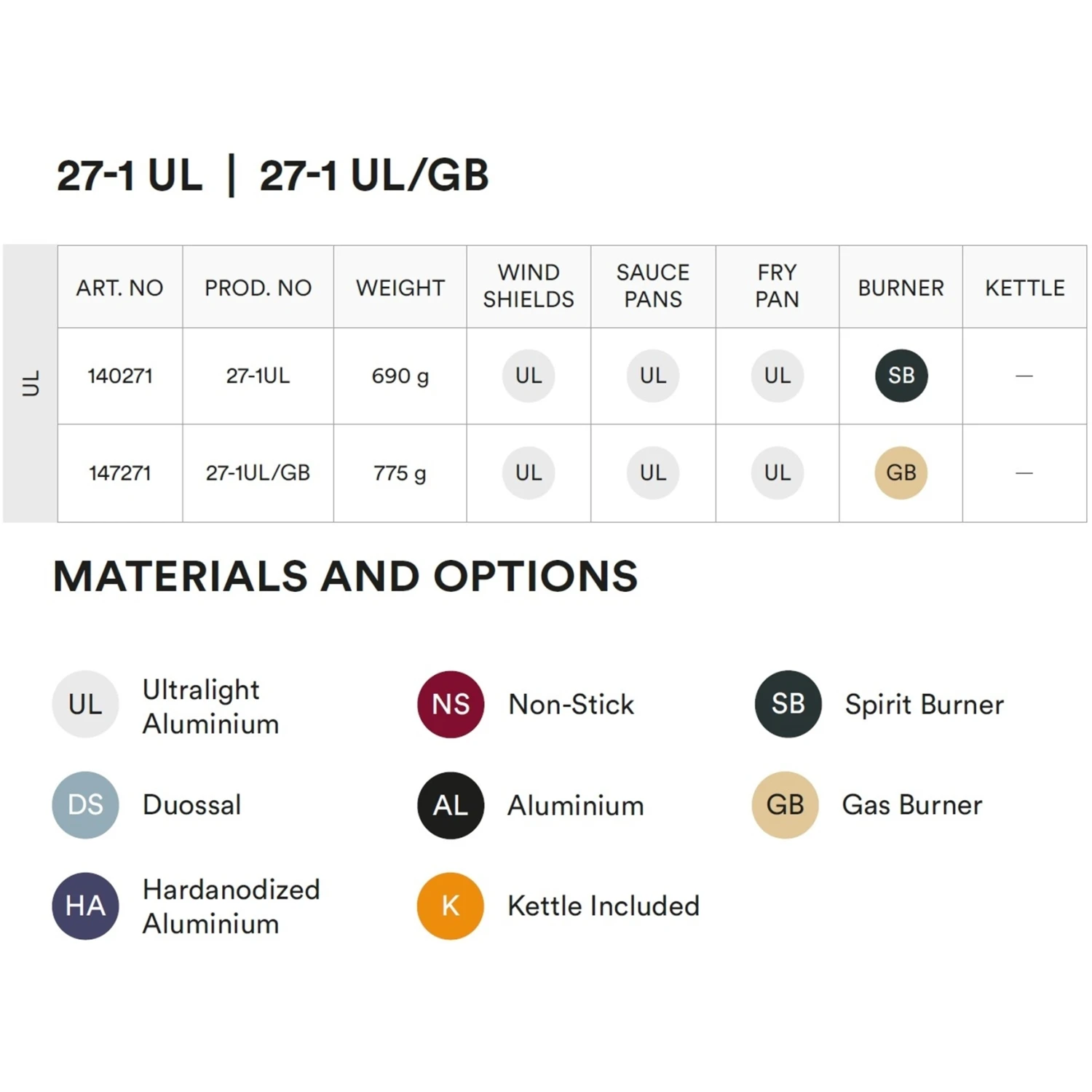 Ultralight Aluminium ist ein leichtes Material mit ausgezeichneter Wärmeleitfähigkeit. Die Ultralight (UL) Legierung, auch 5005 genannt, ist 50% stärker als „normales“ Aluminium (Legierung 1050). Das bedeutet, dass die Töpfe dünner gemacht werden können, was Ihren Kocher leichter macht, ohne dass er an Haltbarkeit oder Funktionalität verliert. UL passt zu vielen Benutzern, die einen einfachen, funktionalen und langlebigen Kocher wünschen.