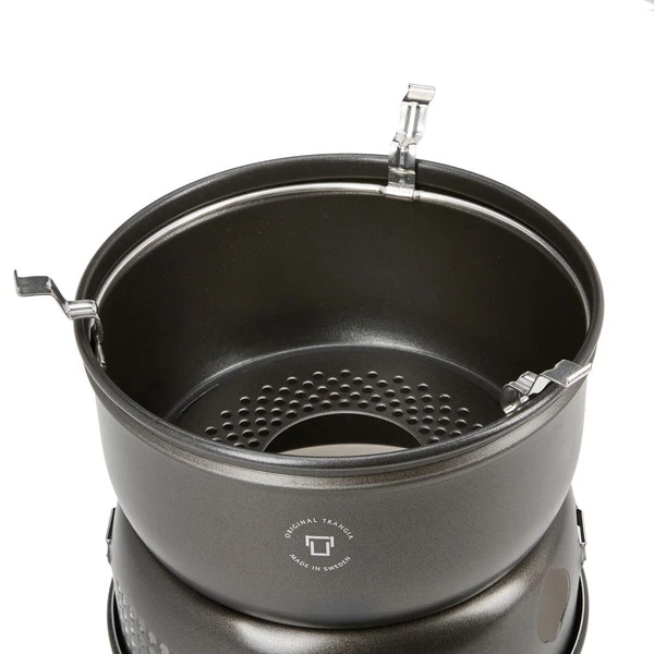 Der Spiritusbrenner kann gegen einen Gaseinsatz (optional erhältlich, siehe Zubehör) ersetzt werden. Das steigert die Effizienz und ermöglicht es dir, das Essen schneller zuzubereiten.
