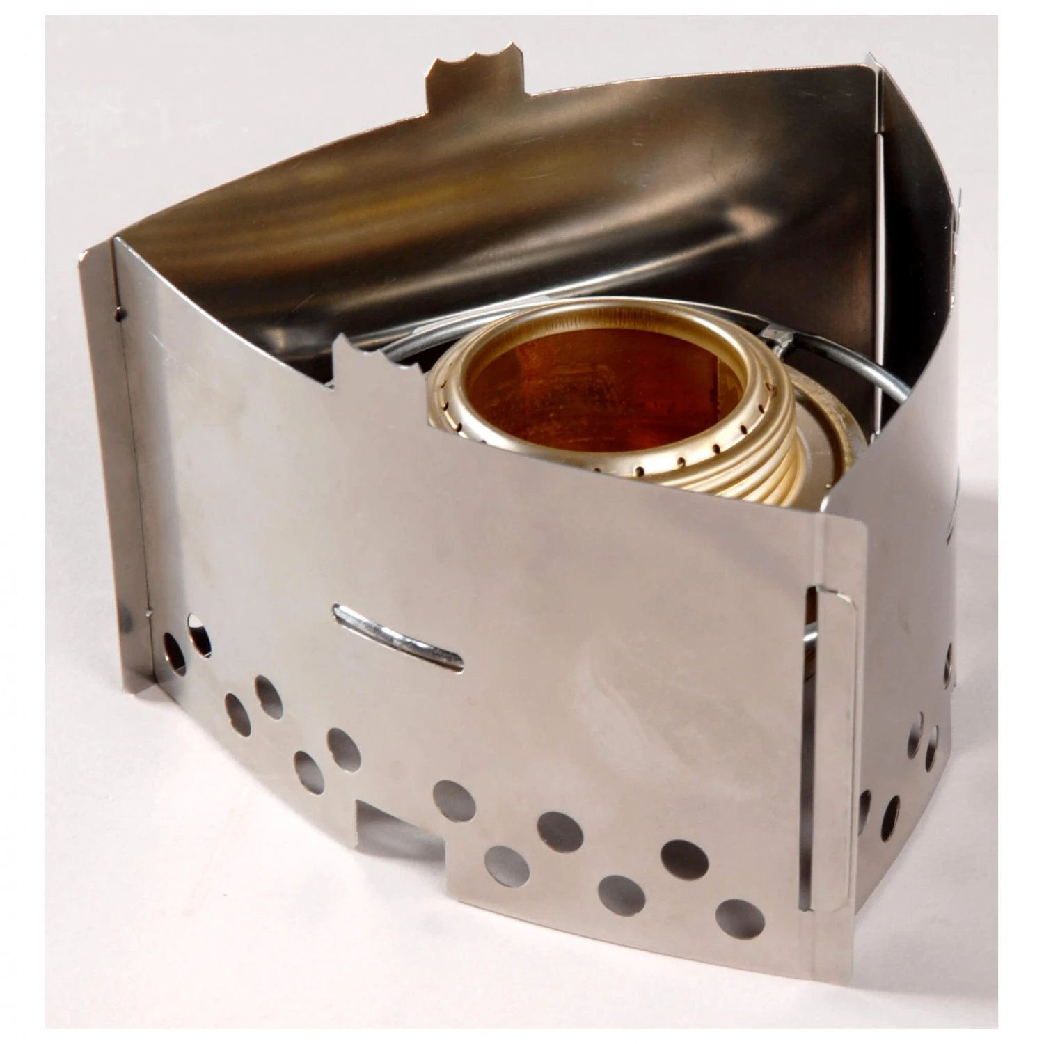 Für Spiritus- oder Gasbrenner: der Trangia Triangle Brennring mit Gestell. Das dreiteiliges Gestell wird mit Brennerring geliefert und besteht aus rostfreiem Edelstahl. Es kommt in einem Transportbeutel. Hinweis: Der Brenner ist nicht enthalten.